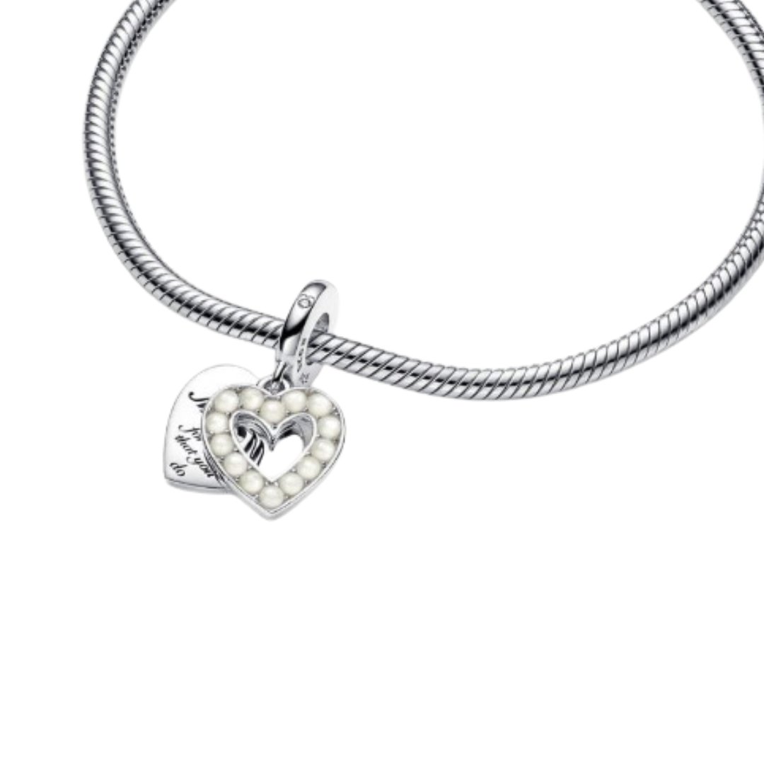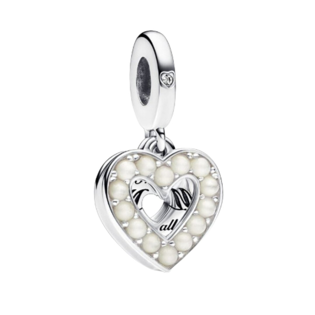 Charm Mamá Colgante Doble Corazón Blanco Perlado plata 925
